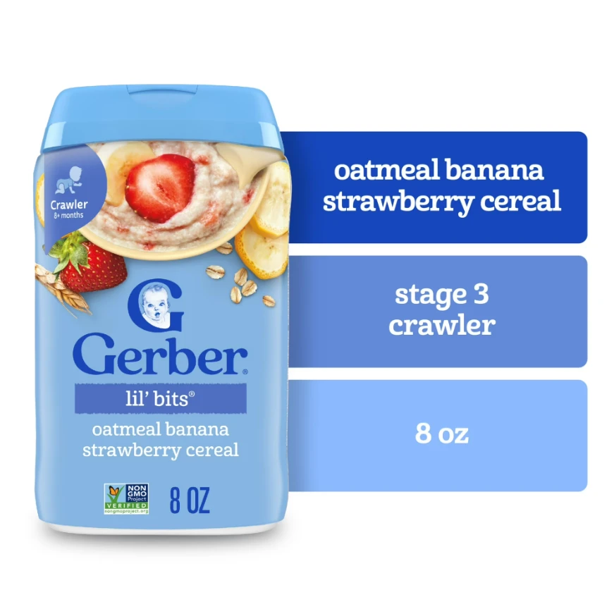 Lil' Bits® cereals have a added texture to help babies learn to chew, mash and transition to table food