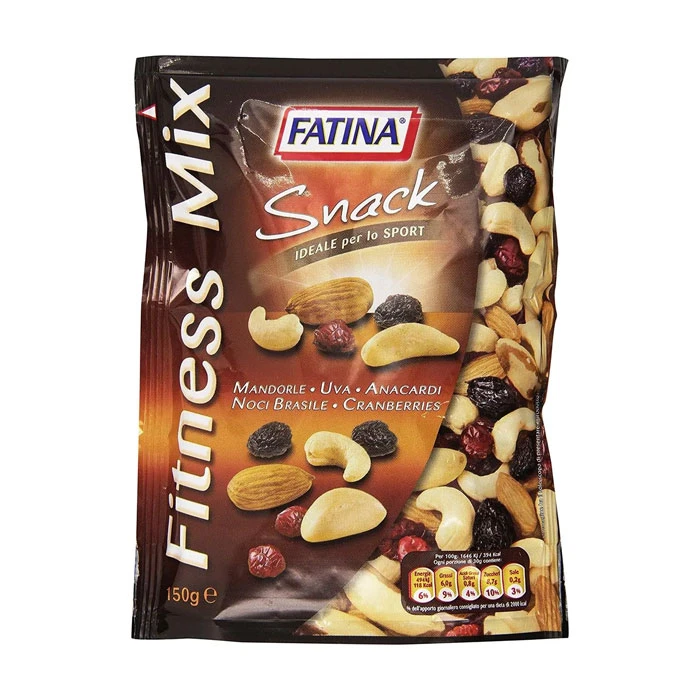 Fatina Snack Fitness Mix is a mix of cashews, almonds, Brazil nuts, raisins and dried cranberries. These are products for a healthy lifestyle. The Fatina brand creates treats for its consumers who adhere to a healthy and balanced diet and know firsthand what a "healthy lifestyle" is. The nuts inside are all lightly roasted, and the candied fruits are natural, without sugar. The Snack Fitness Mix assortment is ideal for those who value pleasure in life. The mixture is a natural and balanced source of vitamins.