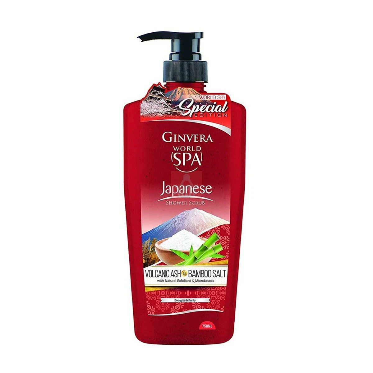 Buy Ginvera World Spa Volcanic Ash & Bamboo Salt Japanese Shower Scrub 750ml online from Cellsii.com. Volcanic Ash works as natural exfoliator which helps to purify skin and remove impurities for a smooth, refined and glowing complexion. Bamboo Salt contains antioxidants to help prevent from free radical damage to the skin. At the same time, works as soft exfoliator for a youthful skin.