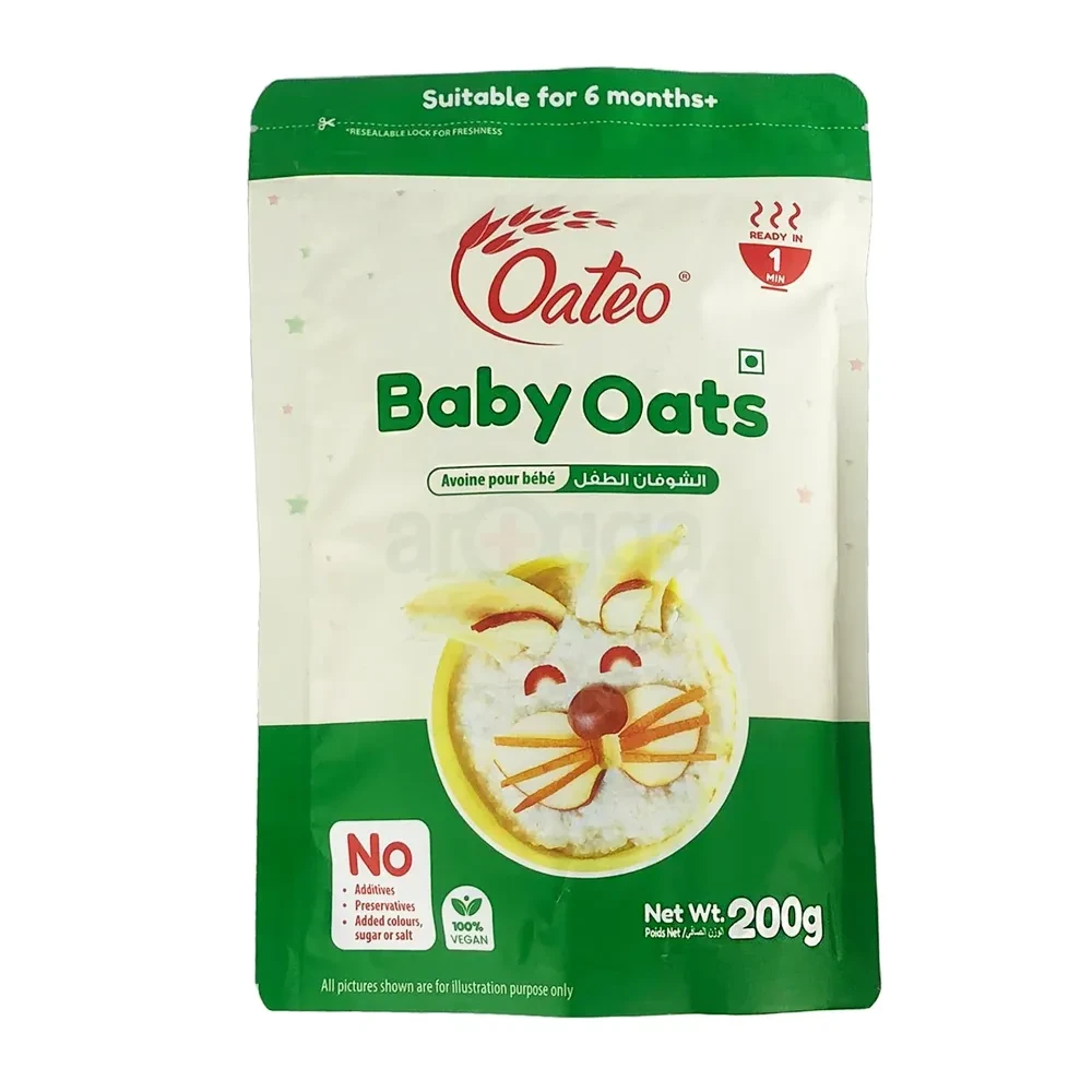 Oateo Baby Oats are finely milled, 100% wholegrain oats specially crafted for infants above 6 months. With a smooth texture and quick 3-minute preparation, these oats provide wholesome nutrition rich in fibre, protein, and essential minerals. Ideal for a gentle, easy-to-digest meal during early weaning stages.